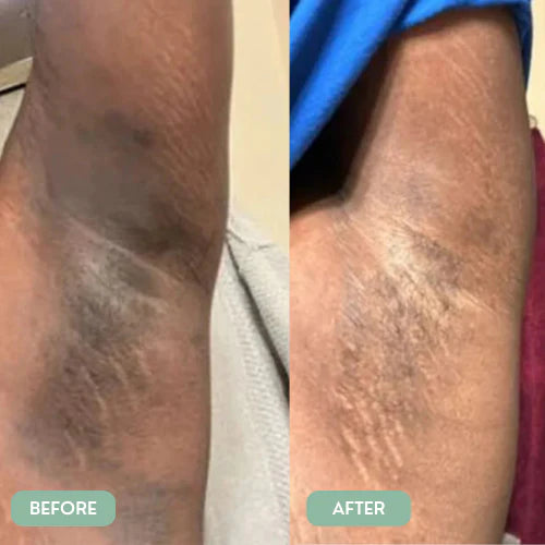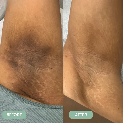 - Brightens dark spots on underarms, knees & elbows